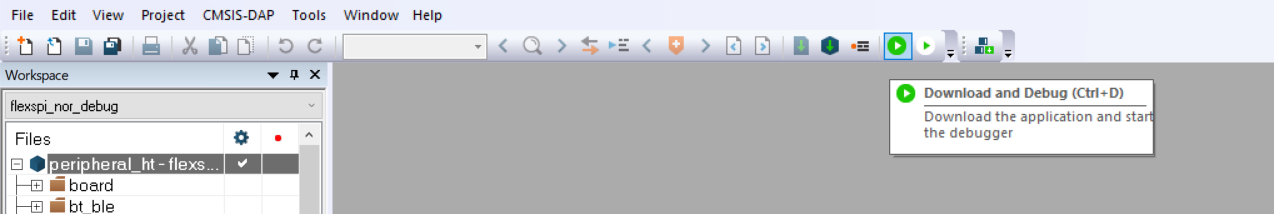 Select flexspi_nor_debug or flexspi_nor_release configurations from the drop-down selector above the project tree in the workspace.