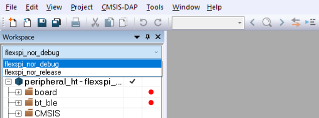 flexspi_nor_debugorflexspi_nor_releaseconfigurations from the drop-down selector above the project tree in the workspace.