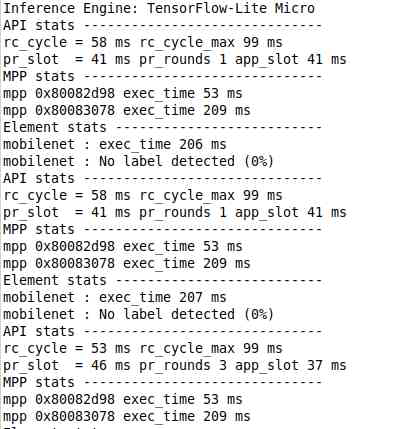 This example shows how to use the library to create an image classification use case using camera as a source. The machine learning framework used is TensorFlow Lite Micro. The image classification model used is quantized Mobilenet convolutional neural network model that classifies the input image into one of 1000 output classes. |