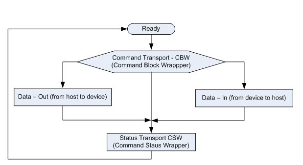 The CBW begins on a packet boundary, and ends as a short packet. Exactly 31 bytes are transferred.