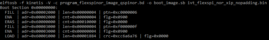The ivt_flexspi_nor_xip_signed_nopadding.bin will be used to generate SB file for HyperFlashQSPI NOR Flash programming in a subsequent section.