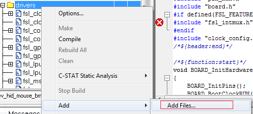 5. Add int-mux file to M0p project, driver > add > add files, as shown in the figure below