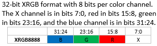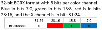 For non-32-bit color formats, each pixel is extended to 32 bits as follows:
