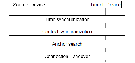 The Time Synchronization procedure enables precise timing alignment between the Source and Target devices for the Connection Handover and Anchor/Packet monitoring processes. The timing information obtained is further required for the Anchor Search procedure.
