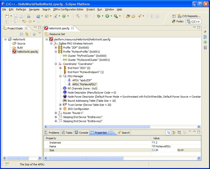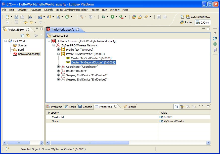Note: This section assumes that you wish to add a ZigBee PRO stack configuration to a project which you have already created in MCUXpresso (in this example, HelloWorld).