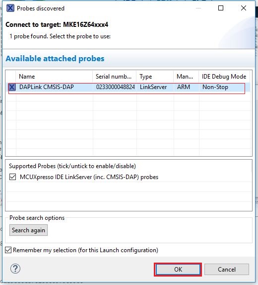 For more information on debug probe support in the MCUXpresso IDE, see community.nxp.com.