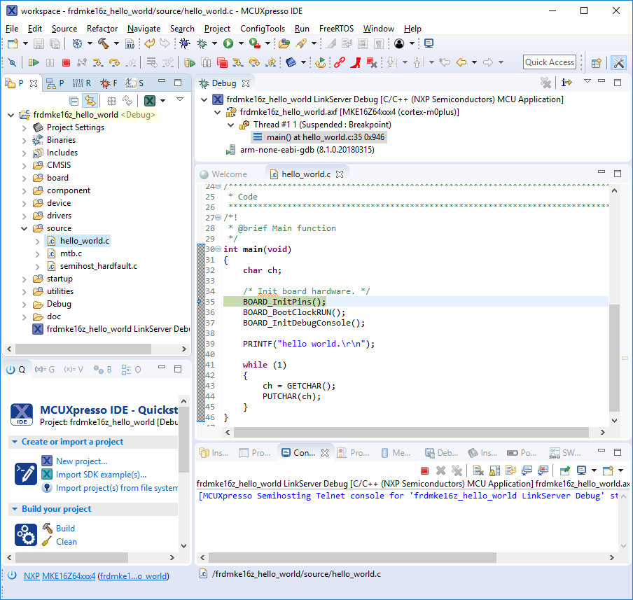 frdmke16z_demo_apps_hello_world [Debug]to launch the debug session.