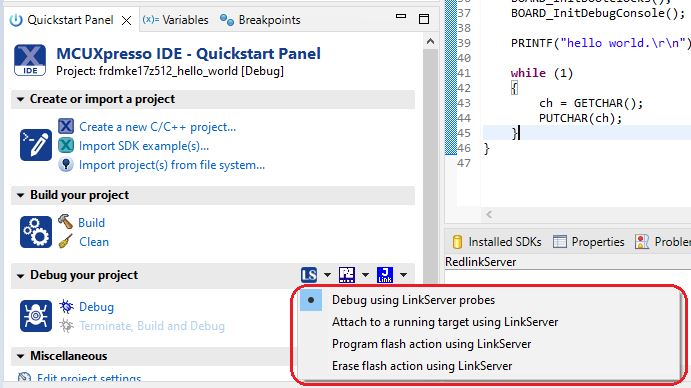 Parent topic:Run a demo using MCUXpresso IDE