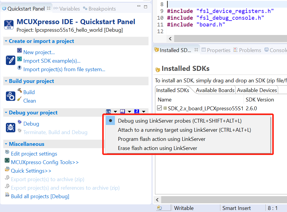 Parent topic:Run a demo using MCUXpresso IDE