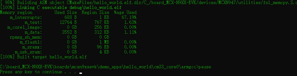 <install_dir>/boards/mcxn9xxevk/demo_apps/hello_world/cm4/armgcc/debug