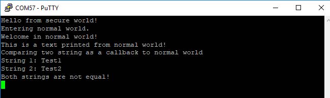 To download and run the TrustZone application, perform Steps 1 to 10, as described in Run an example application. These steps are common for both single core and trustzone applications in Arm GCC.