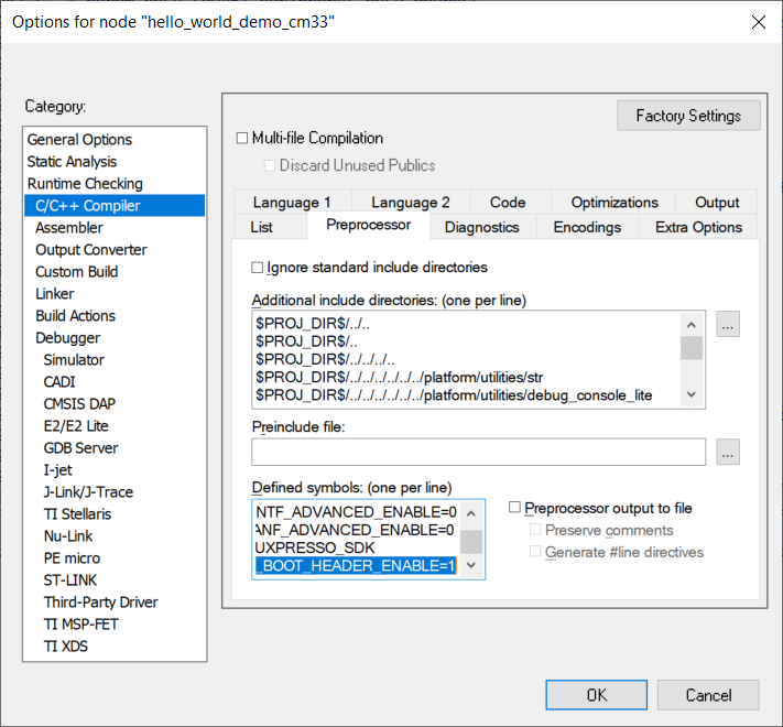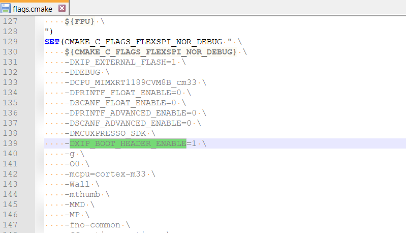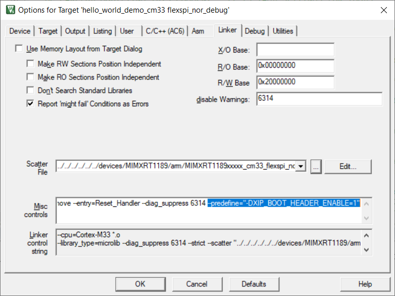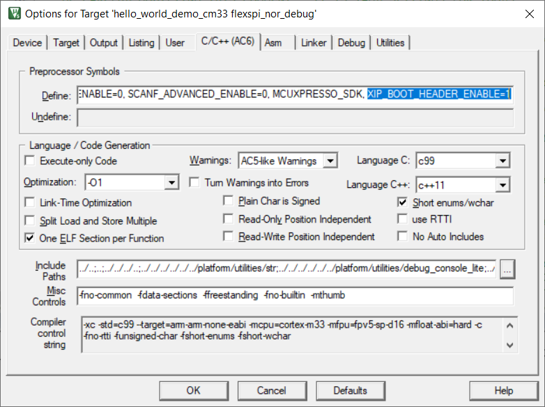 XIP_BOOT_HEADER_ENABLEin the compiler setting.For MDK, change the macro
