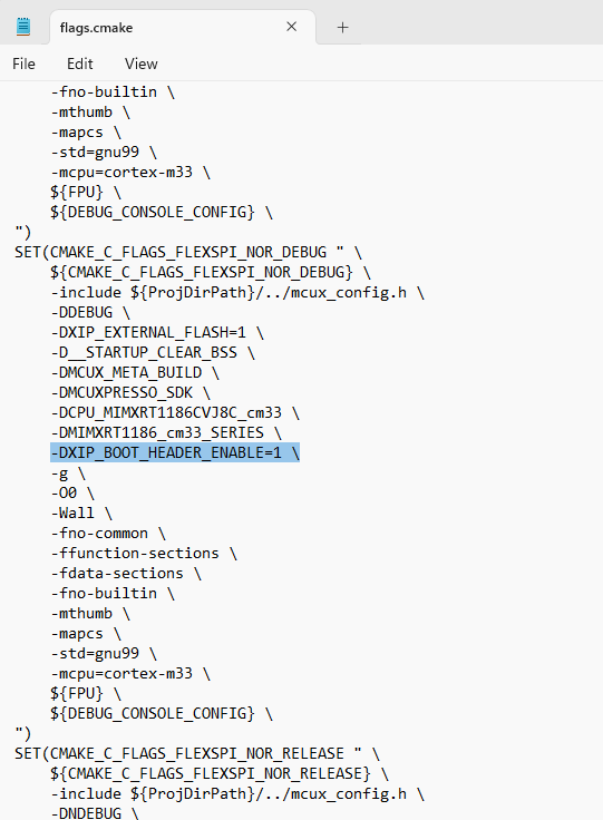 For the SDK CM33 IAR/MDK/ARMGCC project, flexspi_nor targets, as well as for MCUX project, debug/release targets. It is easy to switch RAW/POR image, via the project macro XIP_BOOT_HEADER_ENABLE setting. Table 1describes the rules.