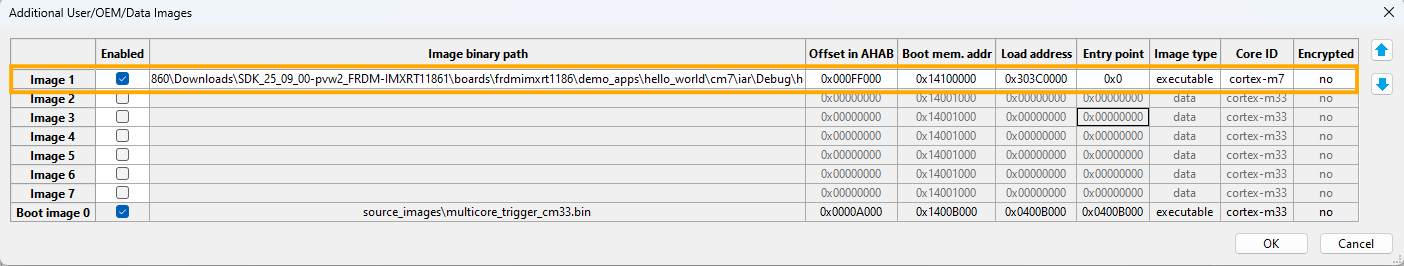 Additional imagesto specify CM7 application image running from ITCM memory. See Table 1 for how to fill in necessary information for this additional image.Parameter