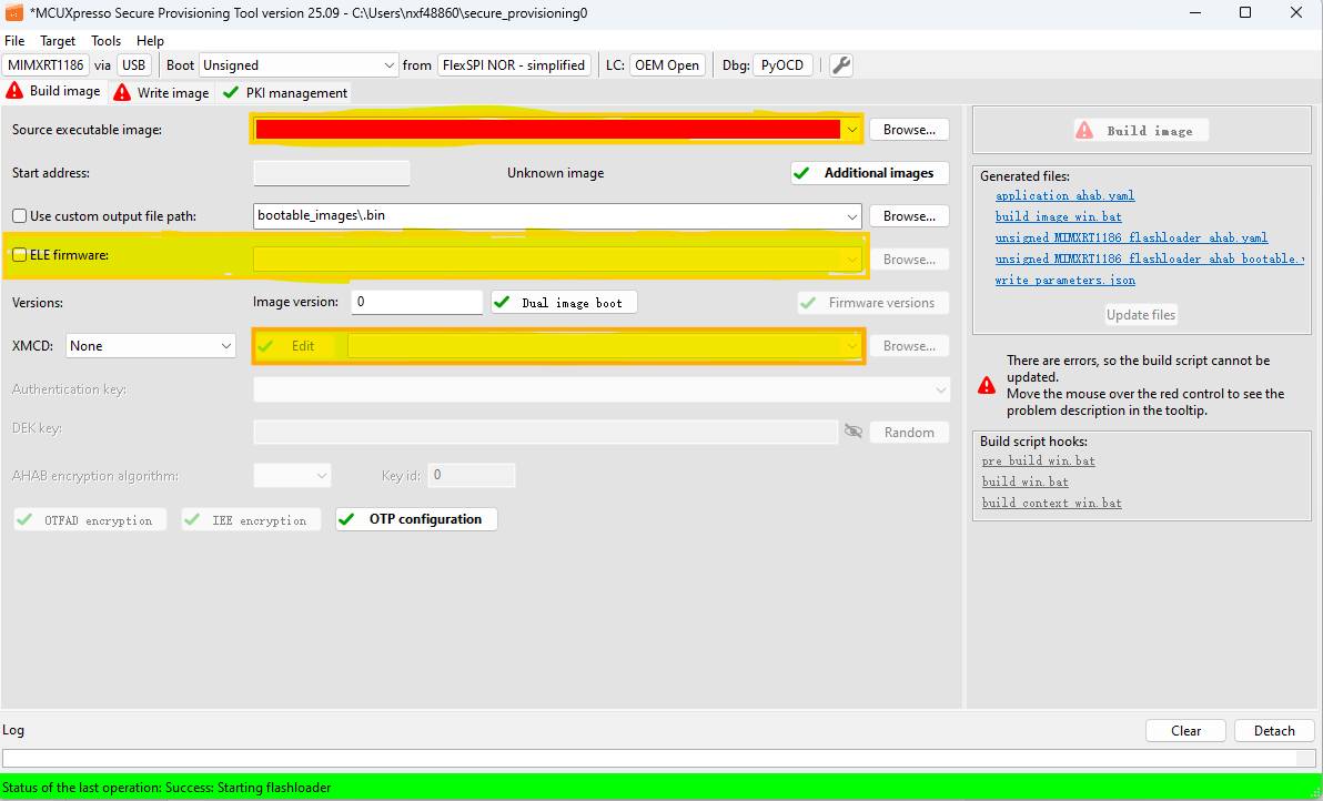 Build imageto build the combined bootable image.J60[1..3]needs to be set to100to let the SOC in serial download mode here.