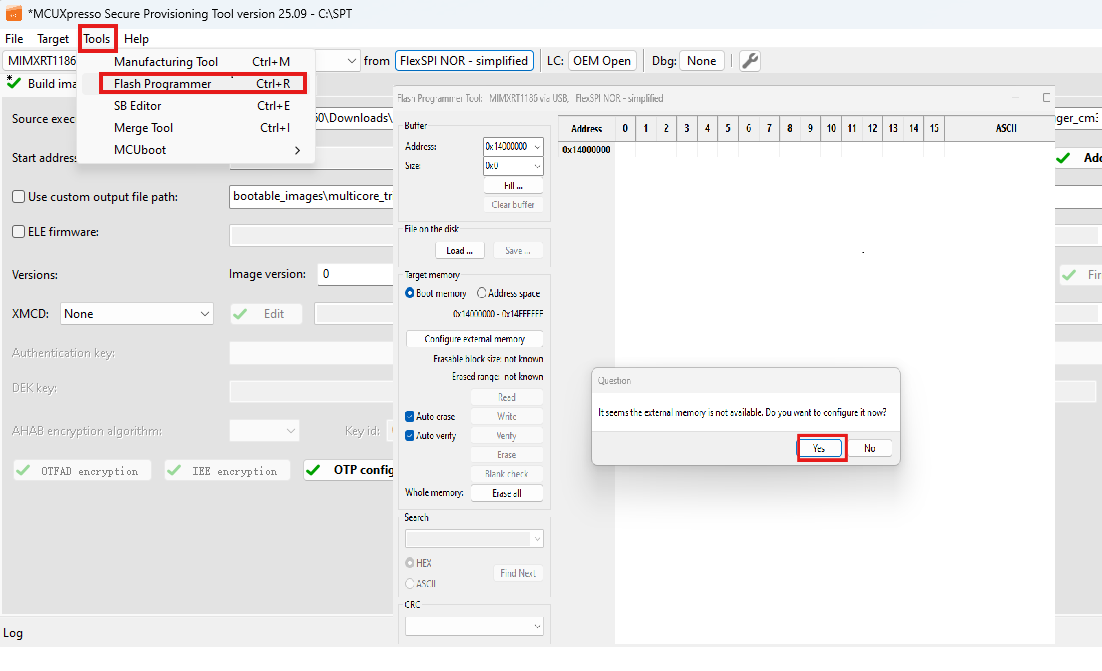 Secure Provisioning Tool, selectTool>Flash ProgrammerorCtrl + R.Click