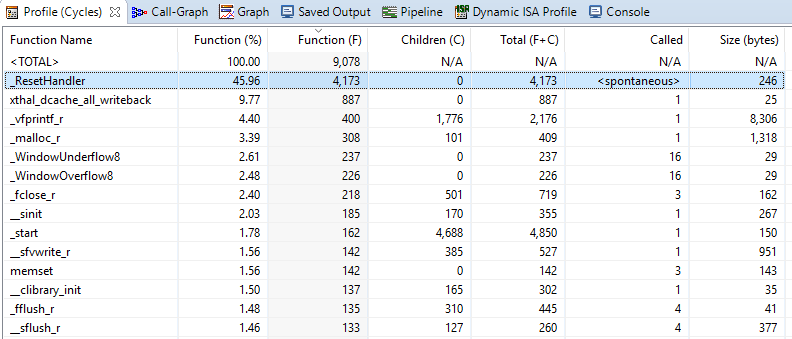 Figure 1 shows profiling result of the helloworld program on simulation console.