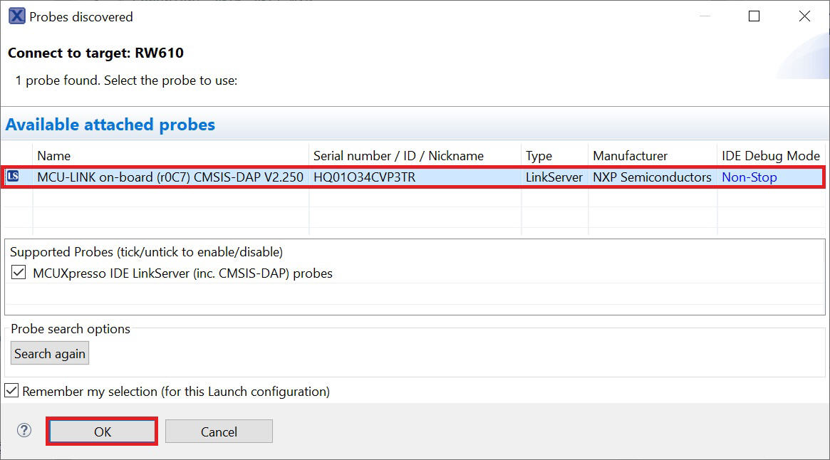 For more information on debug probe support in the MCUXpresso IDE, see community.nxp.com.
