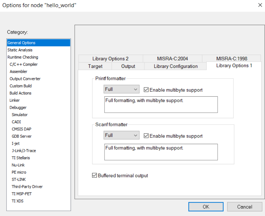 Supported option for IAR are: