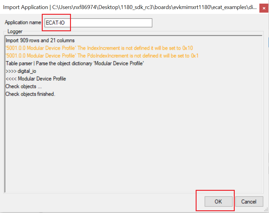 Due to the license issue, the MCUXpresso SDK does not include the EtherCAT SSC. The SSC Tool must generate the subdevice stack code first. This section lists the steps to download the SSC tool and generate the subdevice stack code for the digital IO example via the SSC tool.