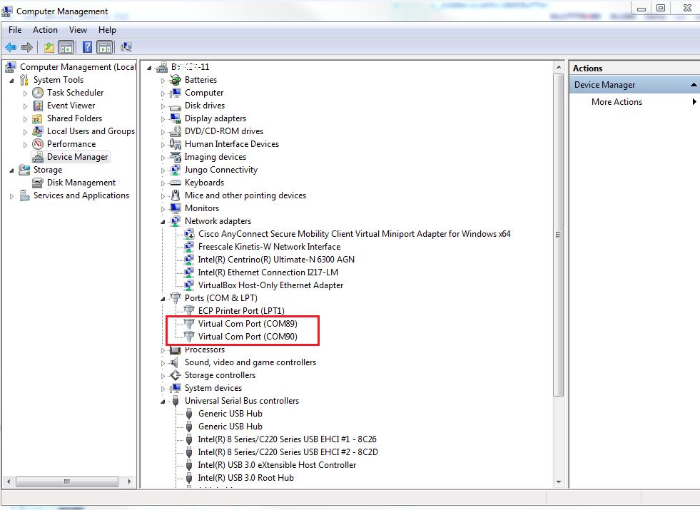 Two COM port are enumerated in the Device Manager. If it prompts for CDC driver installation, see the next section to install the CDC driver.