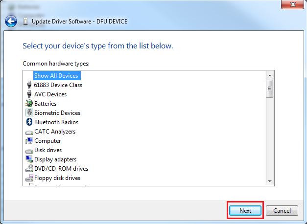 Below are the steps to install the dfu driver on Windows 7 OS. Similar process applies to Windows XP OS.