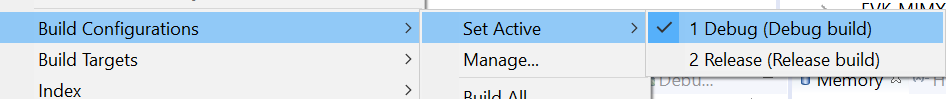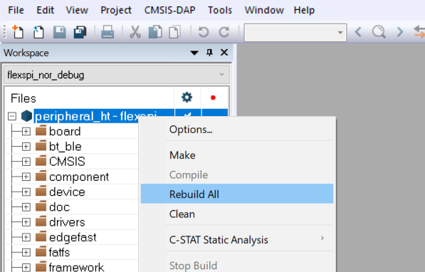 flexspi_nor_debugorflexspi_nor_releaseconfigurations from the drop-down selector above the project tree in the workspace.