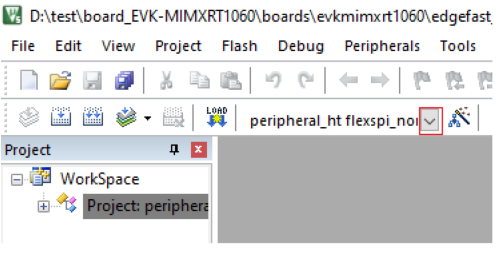 Select flexspi_nor_debug or flexspi_nor_release configurations from the drop-down selector above the project tree in the workspace.
