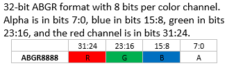 For non-32-bit color formats, each pixel is extended to 32 bits as follows: