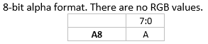 The following codes, as also used in OpenVG 1.1 Specification Table 11, are used for format description: