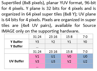 Y: both 16 Bytes UV: both 8 Bytes |