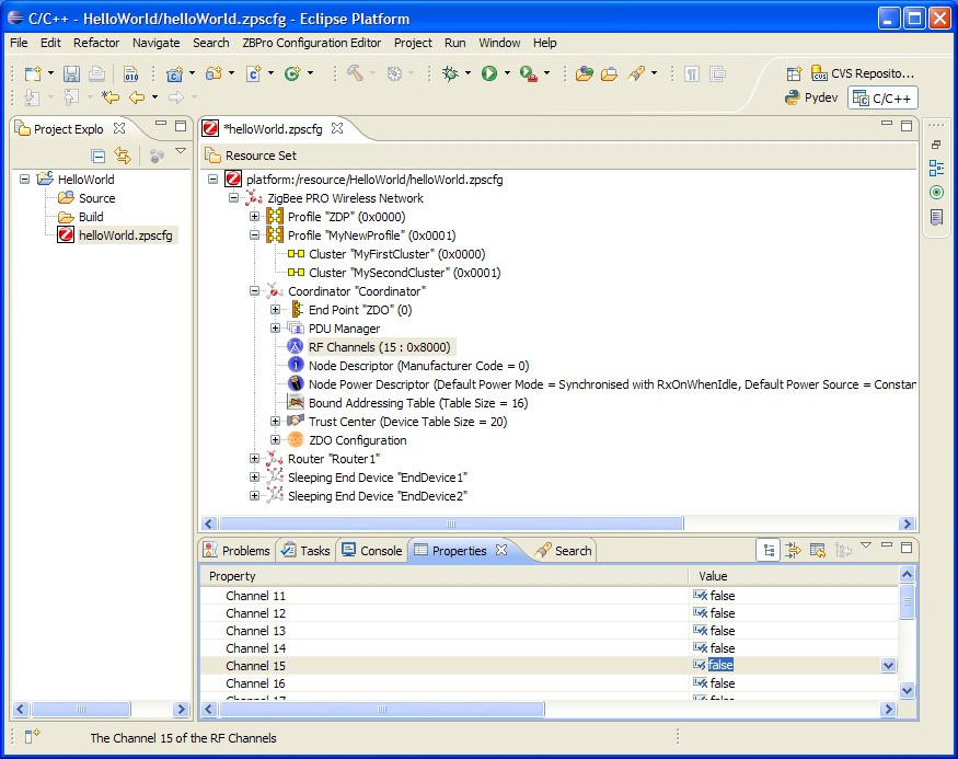 The ZPS Configuration Editor allows ZigBee network parameters to be configured through an easy-to-use Windows Explorer-style interface. This interface is outlined below.