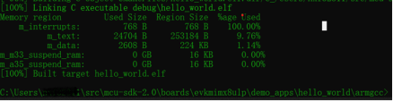 <install_dir>/boards/evkmimx8ulp/demo_apps/hello_world/armgccRun the